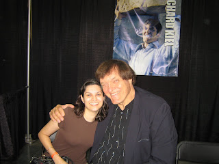 I then went to work convincing Tamara to get up the nerve to meet Walter Koenig, Chekov on Star Trek. She said she’d meet him if I would get up the nerve to meet Richard Kiel, who played Jaws in two Bond movies and Mr. Larson in Happy Gilmore. I agreed and hopped in line with her. Bada bing, bada boom, I was in line at Mr. Kiel’s table before I knew it. I shook his hand, which completely engulfed mine. He turned out to be a very sweet man and laughed when I told him how my husband used to call me “Jaws” when I had braces back in the day. After choosing a photo for him to autograph (I went with a shot from The Spy Who Loved Me), I asked if it would be alright for me to take a photo with him using my camera. He happily agreed and patted the chair next to him for me to sit down. Tamara’s handiwork: Tamara also got his autograph and a photo with him.* After Mr. Kiel, I was on to Captain Jack Sparrow. There he was, at his own booth across from Anthony Daniels, Jeremy Bulloch, William Mapother, and Ron Glass. I approached him and asked if he charged for photos. “Absolutely not,” was his reply, so I handed my camera to Tamara. We posed for the photo and I thanked him. Then I asked what his name was. He sort of curtsied and said, “Why, Cap’n Jack Sparrow, love.” Ah, an actor who refused to break character. Very admirable. “Well, thank you, Captain Jack. It was nice meeting you.”