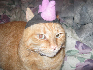Taken the same night I dressed Troubadour up in his Halloween costume. Buster is my pacifist Zen kitty, although you wouldn’t know it from his expression here.