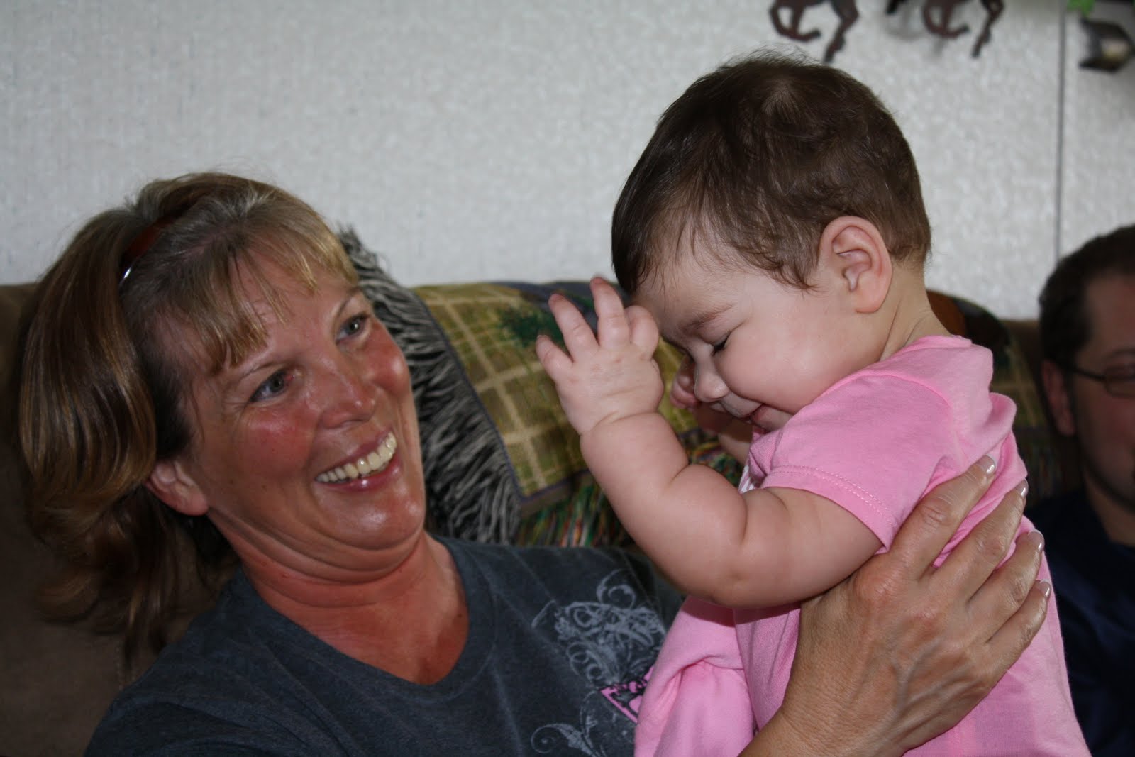 Coraline lounges in Uncle Chris’s arms while Auntie Kirsten looks on.