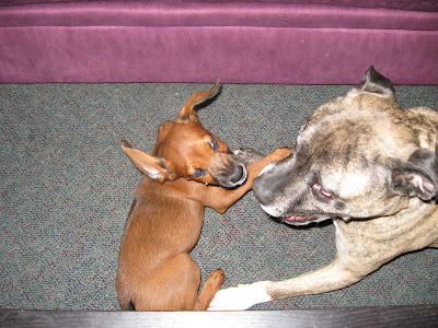 I’m having trouble starting my half of the letter, since, for the 14 (see what I did? I added a person) of you who read this blog on a regular basis know, this year was a really, really bad one. A lot of good things happened this year, too, but deaths, illnesses, and divorces have, unfortunately, outweighed the good for me. Hell, I spent the latter half of January and most of September and October crying, things were so bad. And while I am genuinely looking forward to Christmas, it’s been some work getting excited about it. But I think I’m getting there. Having a funny dog who is essentially acting like a snooping child helps, as does watching my two tabbies have a smack fight under the tree, and watching How the Grinch Stole Christmas! (the good one, not the bastardized version) with Rich. And I’m enjoying all the wrapping paper, presents, and Christmas decorations around the house, although I really have to ramp up my gift-wrapping efforts this year, especially since I joined the Gift Wrap Fetish pool on Flickr that Caren founded. Finally, some kindred spirits.
